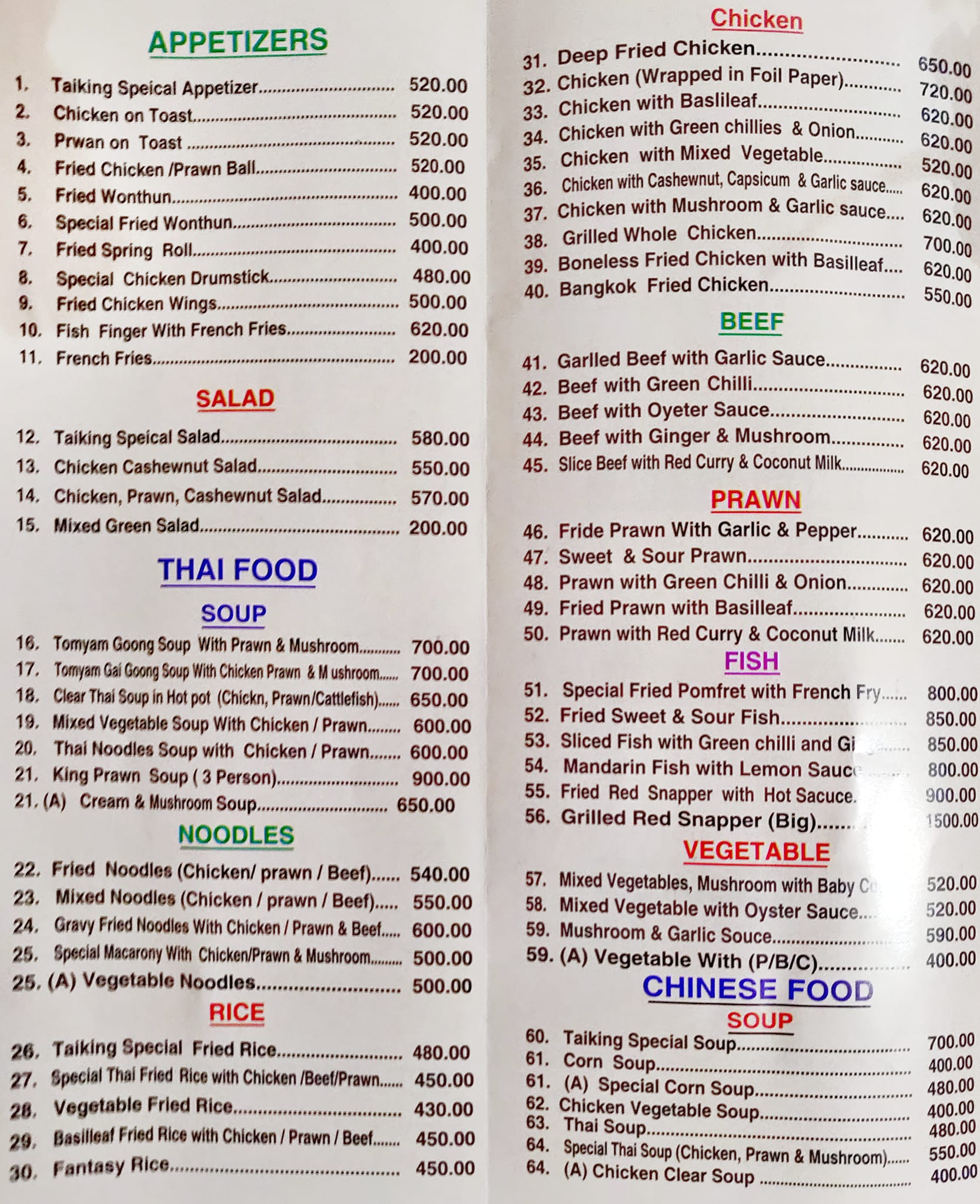 Taiking Thai Chinese Restaurant