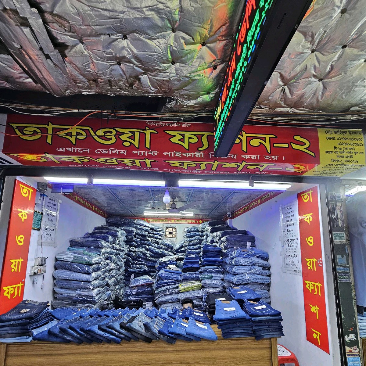 Takwa Fashion-2 in Mirpur 1 offers a premium collection of men’s denim pants designed for modern style, comfort, and durability. Each pair is crafted from high-quality denim fabric with strong stitching and neat finishing, ensuring a perfect fit and long-lasting wear. The collection includes trendy cuts, stylish washes, and versatile designs suitable for casual outings, office casual wear, and everyday use. Located near popular shopping hubs like Mirpur Shopping Center, the area is well known for its wide range of garment stores and wholesale markets . Takwa Fashion-2 focuses on delivering reliable, fashionable, and comfortable denim options, making it a suitable choice for customers seeking quality men’s wear in Mirpur 1.