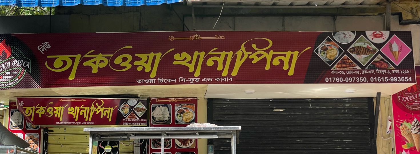 Located in the heart of Mirpur, Takwa Khana Pina is known for its mouth-watering biryani, sizzling kebabs, and signature deshi dishes prepared with fresh ingredients and authentic spices. Whether you’re stopping by for lunch, dinner, or a quick snack, this restaurant promises an unforgettable culinary experience.