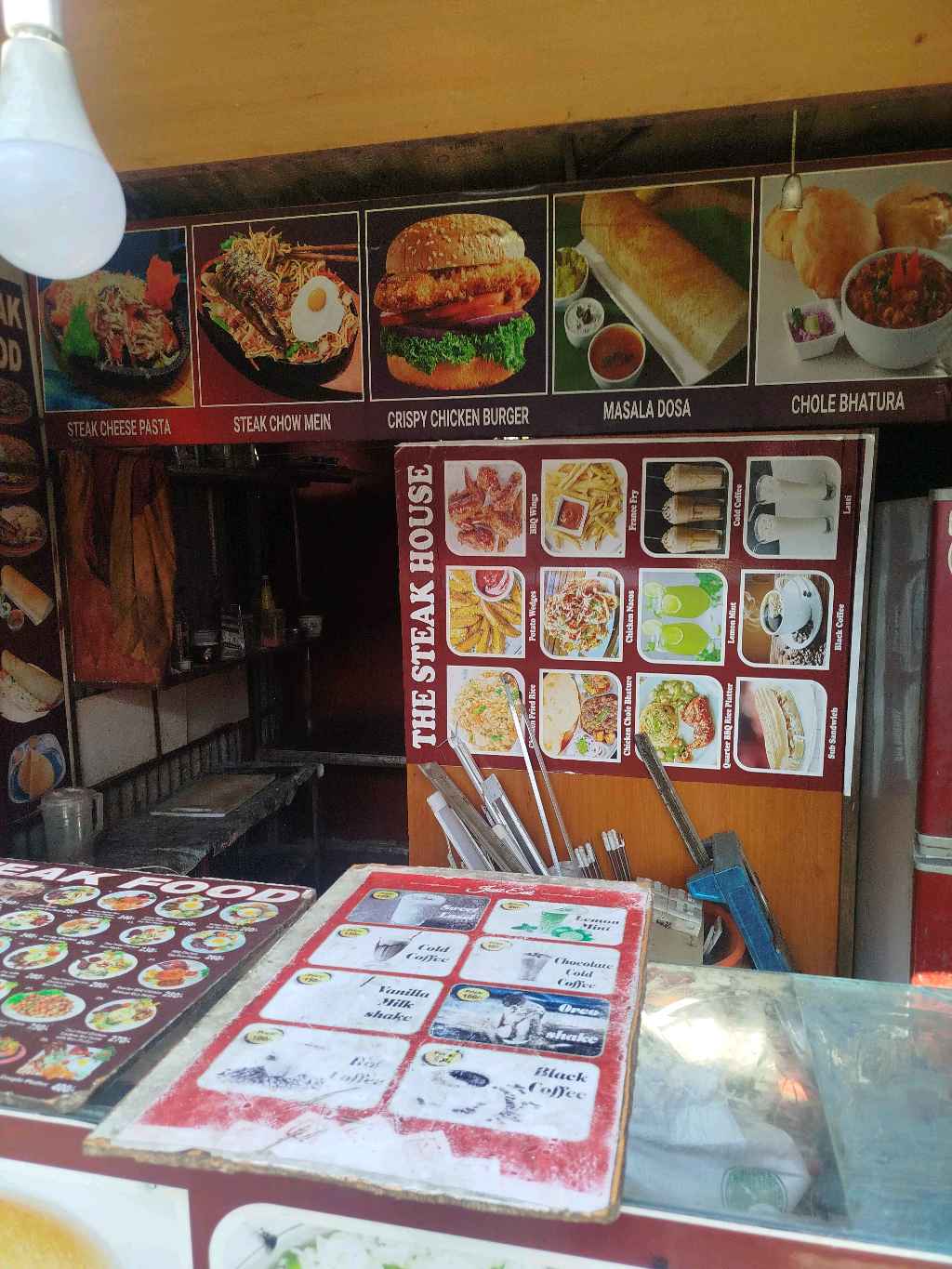 The Steak House is a popular restaurant offering a wide variety of fast food items, prepared fresh to satisfy diverse tastes. The menu includes burgers, sandwiches, steaks, fries, pizzas, and other quick bites, all made with quality ingredients and attention to flavour. The restaurant provides a clean and comfortable environment for casual dining, family meals, or quick snacks. Customers appreciate the consistent quality, generous portions, and friendly service. With a focus on taste, hygiene, and convenience, The Steak House has become a trusted destination for fast food lovers looking for delicious and satisfying meals.