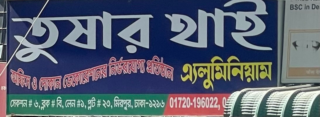 Tushar Thai Aluminium is a trusted and well-known Thai aluminium shop located in the heart of Mirpur, offering high-quality aluminium products for households, commercial spaces, and construction projects. Known for its durable materials, competitive pricing, and professional service, Tushar Thai Aluminium has become a preferred choice for customers looking for strong, stylish, and long-lasting aluminium solutions in Mirpur.