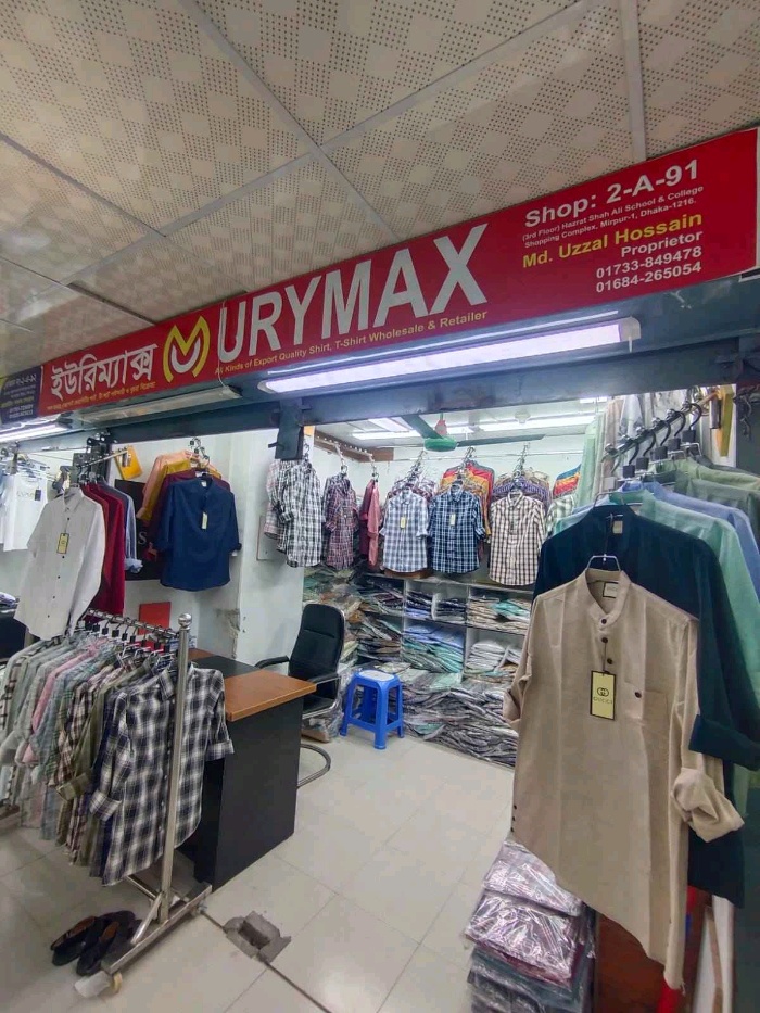 Urymax in Mirpur 1 is a trusted supplier of export-quality men’s shirts and T-shirts, catering to both wholesale and retail customers. The shop offers a wide range of ready-made garments crafted from premium fabrics to ensure durability, comfort, and stylish appeal. Retailers and bulk buyers can access modern and trendy designs suitable for casual wear, office attire, and everyday use. With a focus on consistent quality, competitive pricing, and reliable service, Urymax has become a preferred destination for high-quality men’s apparel in Dhaka.