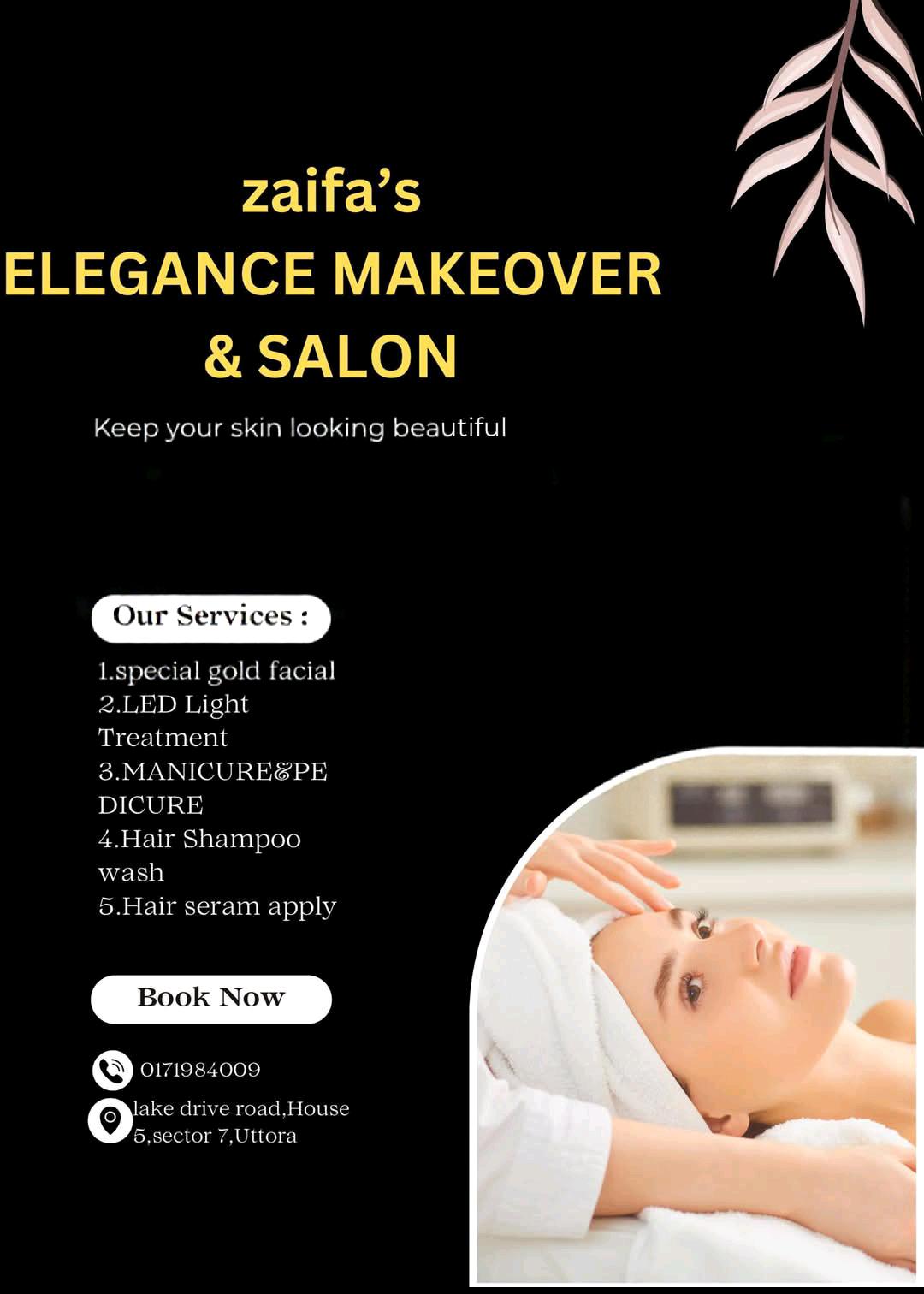 Zaifa’s Beauty Elegance is a contemporary salon specialising in professional beauty and skincare treatments that enhance confidence and personal style. The salon offers a wide range of services, from rejuvenating facials and advanced skincare to expert hair styling and makeup, including bridal preparations. With a focus on quality products, skilled professionals, and a relaxing environment, Zaifa’s Beauty Elegance ensures each client receives personalised care and attention. Every treatment is designed to refresh, beautify, and leave clients feeling pampered and confident.